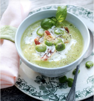 VoorgerechtGemengde tuinbonensoep met pancetta