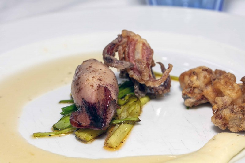 Pijlstaatrinktvisjes met ui, chorizo, pastinaak en prei