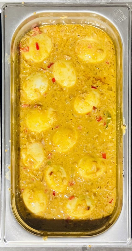 12.Hoe langer de eieren in pittige saus liggen, hoe sterker de smaak van de eieren wordt uiteraard. Proef of je nog extra sambal wilt toevoegen of niet.