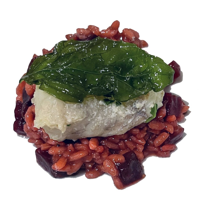 HoofdgerechtRisotto met rode biet en zeeduivel of kabeljauw