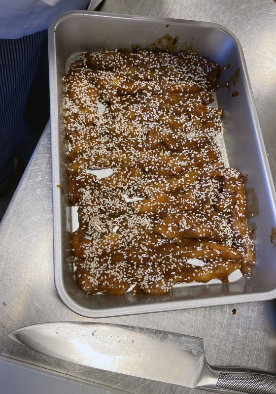 - Draai kleine balletjes van het deeg en plaats ze “in verband” (6 tot 8 cm uit elkaar) op een bakmat en bak ze goudbruin in de voorverwarmde (180 graden) oven.