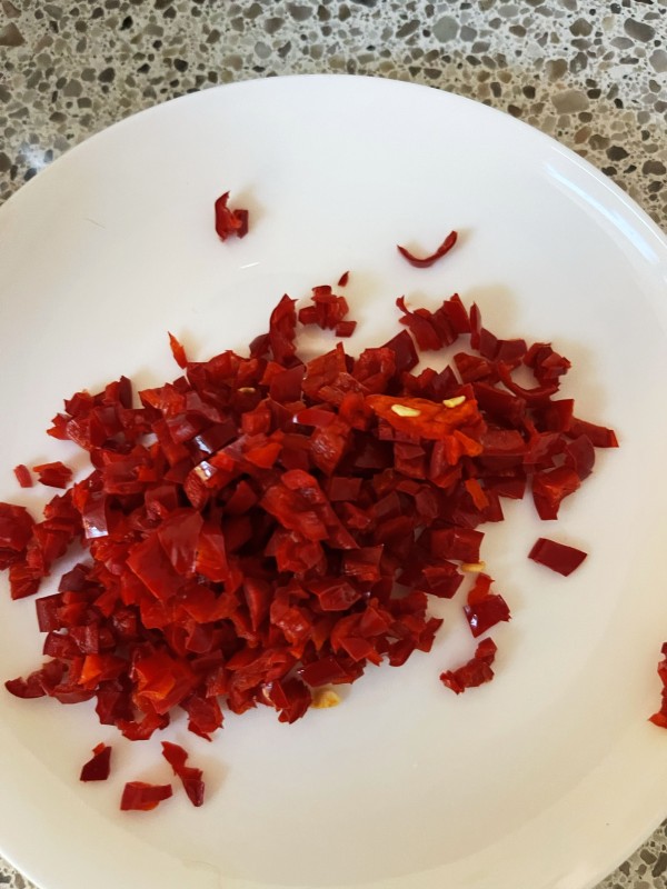 - Maak de blaadjes los van een potje basilicum en hak ze samen met de suiker fijn in een keukenmachine.