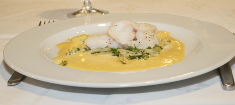 HoofdgerechtZEEDUIVEL MET KNAPPERIGE WITLOF EN SCHUIMIGE SAFFRAANSAUS