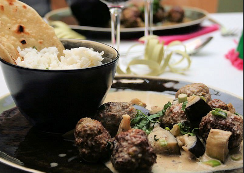HoofdgerechtIndische groene curry met balletjes van lamsgehakt en pistachenootjes